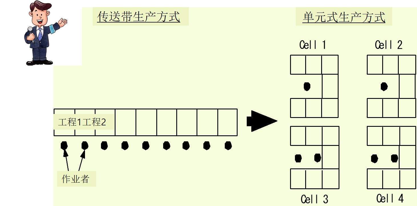 單元生產(chǎn)方式的定義 :是指無傳送帶LINE,從頭到尾由作業(yè)者負(fù)責(zé)執(zhí)行業(yè)務(wù)的自己完結(jié)型的生產(chǎn)方式。