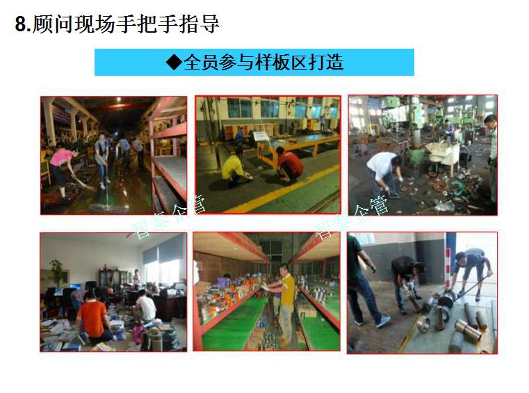 手把手指導(dǎo)打造一個規(guī)范、整潔、高效、安全的工作環(huán)境,隨時可參觀,可檢查,可介紹的生產(chǎn)標(biāo)桿現(xiàn)場---提升企業(yè)新訂單接單率;