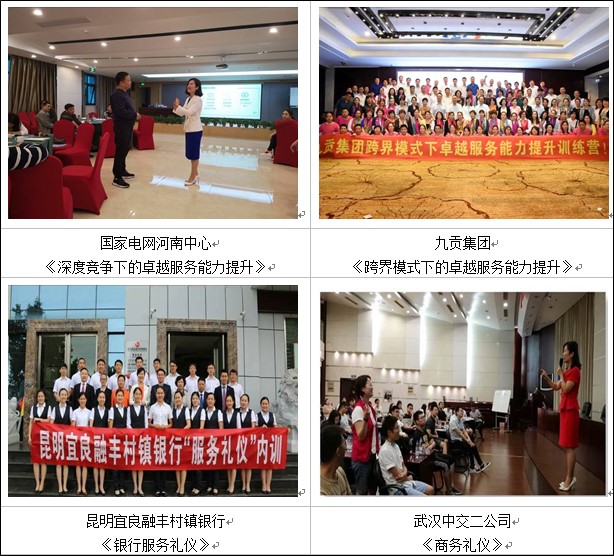 曾為中國(guó)人壽、中國(guó)平安、中鐵一局、國(guó)家電網(wǎng)等企業(yè)定制實(shí)戰(zhàn)禮儀課程,課程滿意度95分以上;