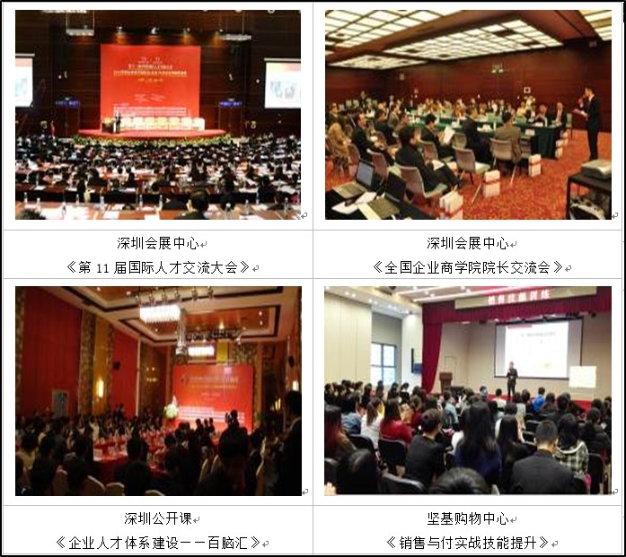 曾策劃執(zhí)行《第11屆國際人才交流大會——第2屆中國企業(yè)商學(xué)院院長年度論s壇暨頒獎盛典》、《中國企業(yè)商學(xué)院院長首腦會》、《總裁高峰論壇》、《中國培訓(xùn)行業(yè)同一首歌》等,并多次擔(dān)任大型論壇分享嘉賓。