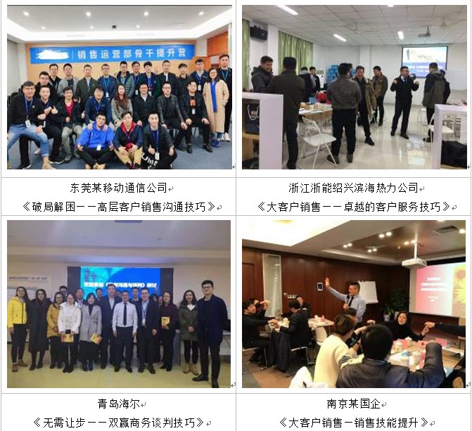 我們這次主要是希望對(duì)公司的業(yè)務(wù)部門做一次銷售技巧的培訓(xùn),我們是老國(guó)企,銷售人員的年齡都比較大,在這個(gè)行業(yè)里面的時(shí)間也比較長(zhǎng)了,經(jīng)驗(yàn)都比較豐富,這次請(qǐng)老師過(guò)來(lái)是希望能幫助我們梳理一下銷售方法,前期的調(diào)研很重要,譚老師很認(rèn)真的和我們業(yè)務(wù)部門的各級(jí)人員都做了電話溝通,從目前的業(yè)務(wù)現(xiàn)狀,問(wèn)題,目標(biāo),流程做了診斷,提煉了大量的成功和失敗案例,做了充分的準(zhǔn)備,為我們的銷售人員呈現(xiàn)了一堂非常精彩的《顧問(wèn)式銷售技巧》課程。