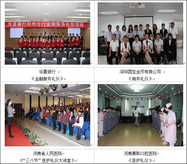 連續(xù)5年受聘于深圳航空、海南航空公司,從事空乘人員的職業(yè)化形象、儀態(tài)禮儀、服務(wù)禮儀、客戶溝通禮儀等專業(yè)應(yīng)用禮儀培訓(xùn)。期間,在深圳航空共培訓(xùn)新招聘空中乘務(wù)人員32期,每期200人,共計6400人;在海南航空公司共培訓(xùn)新招聘空中乘務(wù)人員36期,每期200人,共計7200人,輸送至國內(nèi)不同航班。