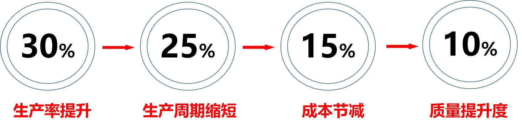 生產(chǎn)效率提升50%以上;產(chǎn)品質(zhì)量提升度30%以上;生產(chǎn)經(jīng)營(yíng)成本下降10%以上;設(shè)備故障率下降70%以上---確保成為行業(yè)標(biāo)桿和最高競(jìng)爭(zhēng)力企業(yè)。