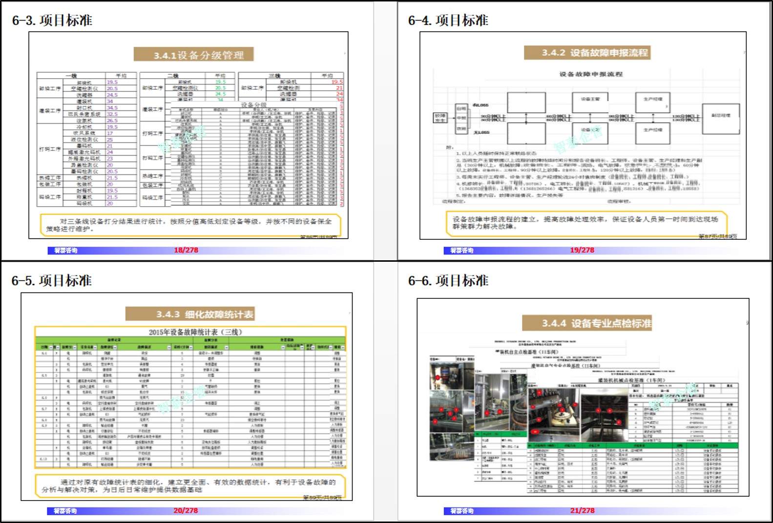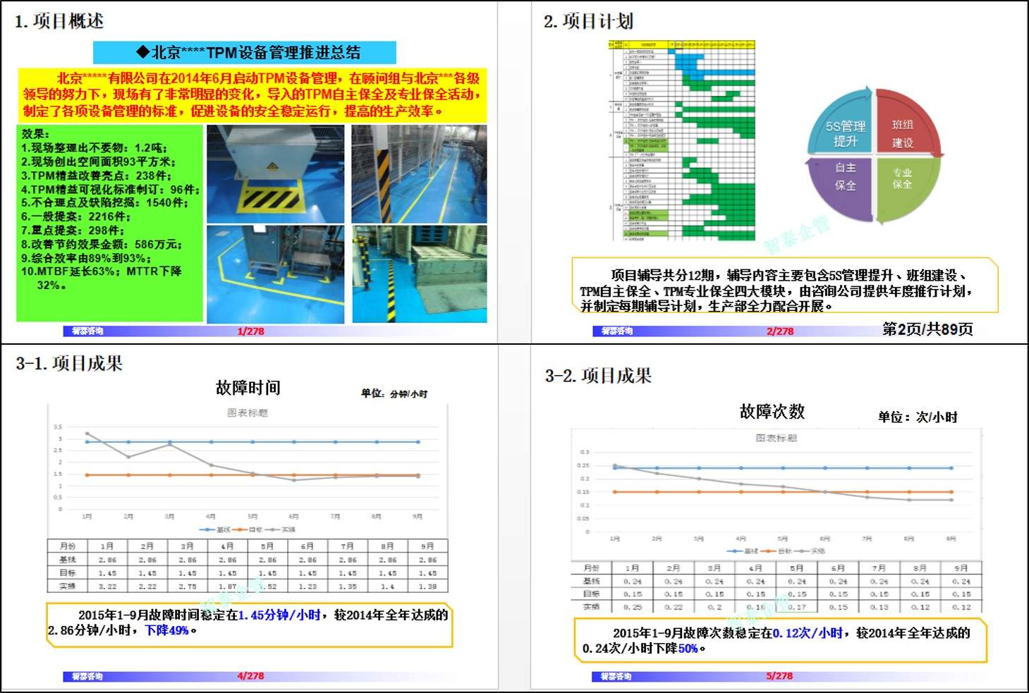 智泰咨詢下屬的TPM咨詢公司為企業(yè)推進的TPM管理活動中,為企業(yè)設(shè)備故障率下降推進了大量的制度及標準,通過全員消除設(shè)備的缺陷并改善及復(fù)原,并對設(shè)備進行部分改良,促進設(shè)備長期穩(wěn)定運